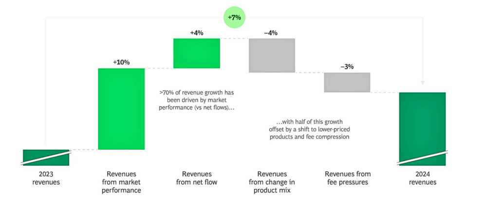 - Revenue driven by markets: Fully 70% of revenue growth in 2024 was market-performance-driven, underscoring persistent vulnerability to external volatility